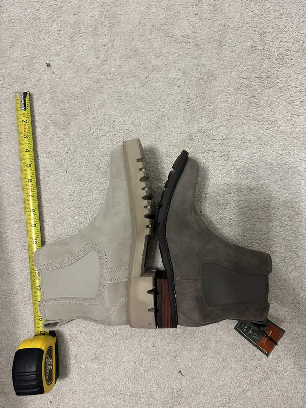These boots are clearly great quality, but the Waterproof Wexford runs very small. So small that I genuinely thought I had a mislabeled boot. You can see in the photos that the Wexford Lug Chelsea Boot (in color “Clay”) in 8.5 is about a half inch longer than the Wexford Waterproof Chelsea Boot (in color “Taupe”), also size 8.5. I know they’re different shapes and the Lug Chelsea boot is meant to be a bit more almond shaped and have less lift at the toe, but the difference in fit is still wild. The Lug Chelsea boot fits very comfortably, and I could only get my foot in the Waterproof Chelsea boot if I reeeaally muscled it in, and it was so tight and uncomfortable that there was no way I could walk around in that shoe for more than a minute. I rarely ever have to size up to a 9, even in boots, since I prefer to wear them with normal athletic crew socks. Considering exchanging for a different color and/or size, but I might have to go up a full size to a 9.5.