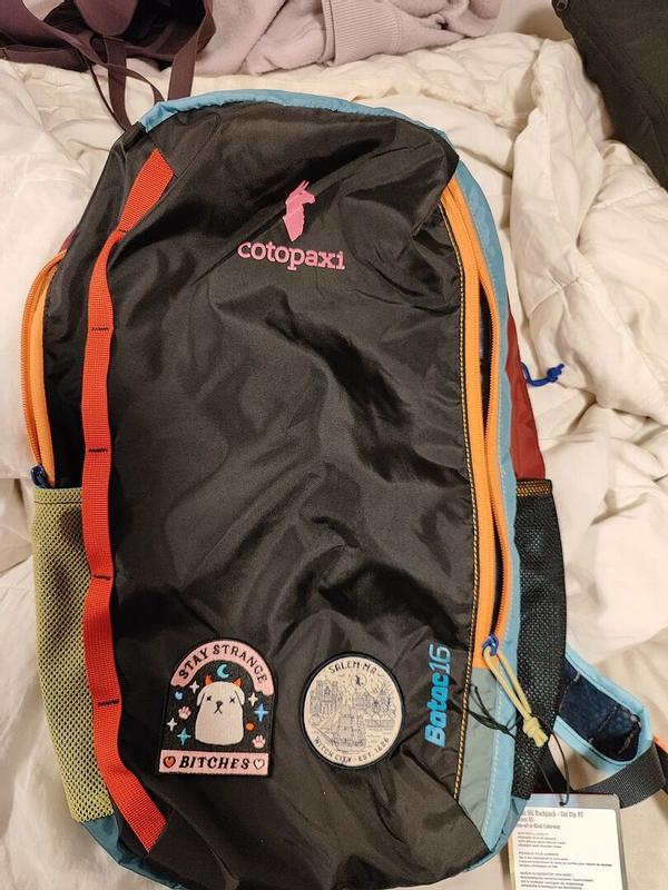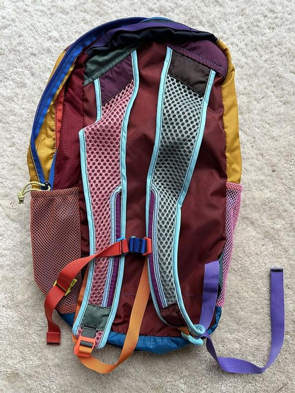 Every Cotopaxi Del Día pack is uniquely built using 100% repurposed deadstock fabric—leftover materials that would otherwise go to waste. Cotopaxi creatively blends these vibrant scraps into bold, one-of-a-kind colorways that reduce textile waste and carbon impact. Because no two packs are ever the same, the color of your Del Día pack will be a surprise—totally unique and not exactly as pictured. That’s the beauty of it.