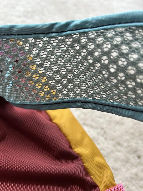 This was exactly what I was hoping it would be: a small, super lightweight, foldable pack that will take up little space in my luggage. And remarkably, even without the usual thick, stiff, bulky shoulder straps of a heftier backpack, it is very comfortable to wear! The straps are wide but thin, with a spongy sort of padding. The front side-zip compartment is super easy to access by slipping the left shoulder strap off. My big iPhone 14 Plus fits in the mesh slip pocket, where I don’t have to hunt around for it. The main compartment has (for me) the perfect level of organization with its deep slip pocket and zip mesh pocket; more than that and I just forget where I put what. The water bottle pockets will fit my bottles that are just under 3” in diameter, but if the pack was really full, the bottles would not fit. Lastly, the colors of the pack I received were amazing! Based on images online, I was expecting bright royal blues and fire engine reds (which I wasn’t thrilled about), but instead got very deep teal blue, rusty maroon, and dark gold with splashes of pink, orange, purple, and more. I LOVE it.