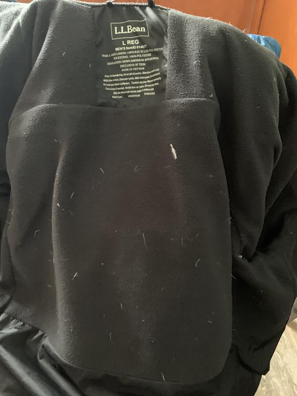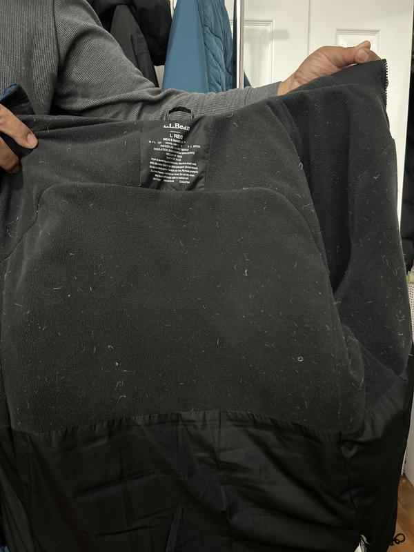 I should have returned this immediately. Half of the interior is fleece lined causing whatever garment you're wearing, shirt or sweater, to snag and grab onto the fleece and make it a struggle to put on. It pulls the fleece lined interior outside the ends of the coat sleeve. Also, there are no inside pockets nor an exterior breast pocket. It's warm enough but LLBean has been making down coats for decades and this was a totally rookie mistake. Shop around.