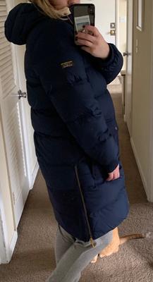 Great length and perfect for New England winter mornings with the dog. Very cozy. Would love if there were an inner pocket. The zipper appears to be holding up well after a month. At the sale price, it's a decent and warm coat of sufficient if not indestructible quality, and you feel like you are in a sleeping bag - in a good way!