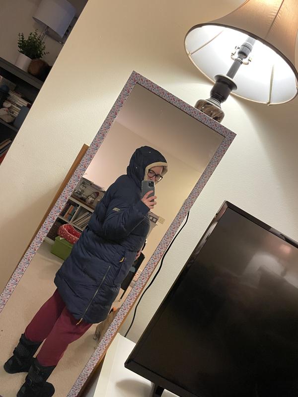 Love love love this coat. It’s snuggly, keeps me warm, and the large pockets and side zippers make it very functional