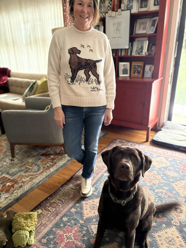 This sweater far exceeded my expectations! I was a tad nervous about spending this much on a cotton sweater, but it is amazingly soft and the fit is spot on! I am a dog lover and couldn’t be happier with the fun canine design.