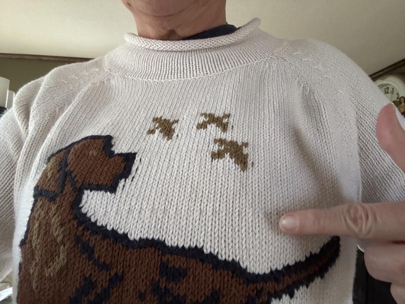 LOVE this sweater. Not only is the dog design unique and great, but the cotton sweater is comfy.