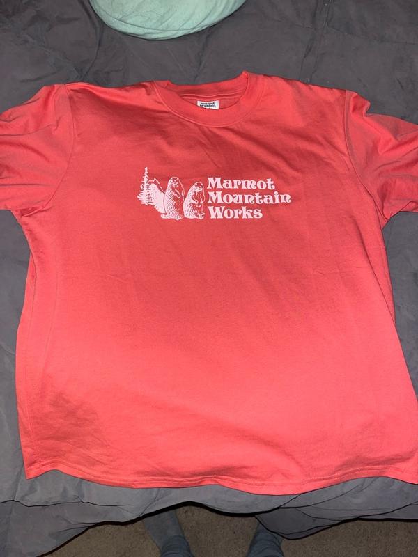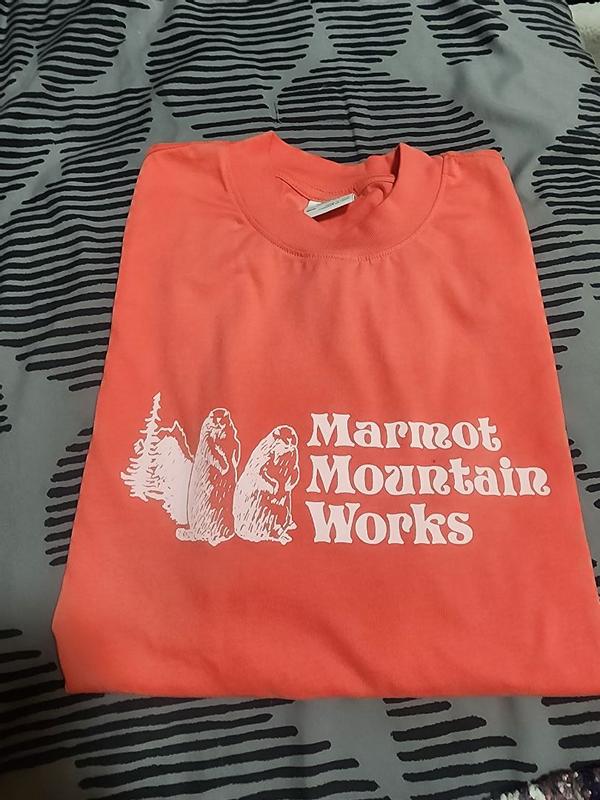 - Screen-printed Marmot Mountain Works graphic adds outdoor style