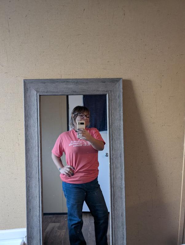 I love this T-shirt, particularly the grapefruit color. I am a fan of the fit as well, which is relaxed, but flattering. If I could change anything, I would make the neck just a bit less tight. But overall it is a 5-star shirt!