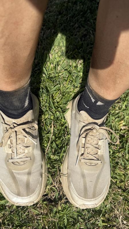 "This shoe is built for serious trail racing. The Dyneema upper is insanely light yet strong, and it drains water quickly when I hit wet trails. The Vibram Megagrip Elite outsole provides outstanding traction on technical terrain, while the Arnitel midsole gives me just the right balance of cushioning and energy return. Whether I'm pushing for a PR or tackling an ultra, these shoes feel fast, stable, and built to last."