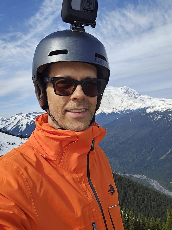 - Powder skirt and wrist gaiters keep snow out on deep days
