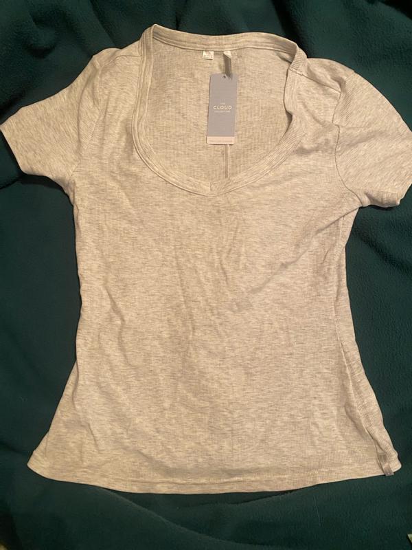 [This review was collected as part of a promotion.] The cloud rib top is exactly as described, soft and breathable like you’re in a cloud. The material is cooling while super comfortable. I would say it fits true to size and really comfy as a working mom.